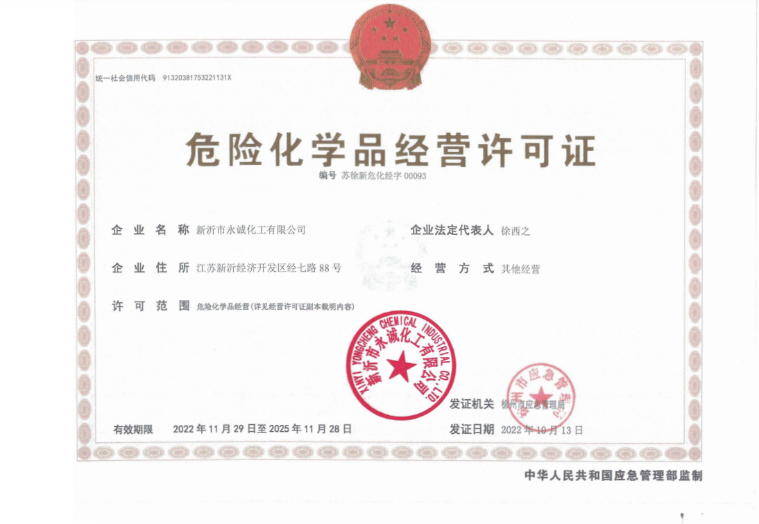 ■  郵 箱:sales@yongchengchem.com ■  網 址:www.yongchengchem.com